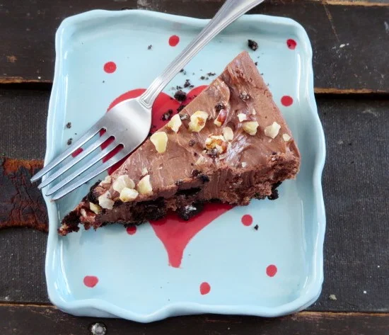 This is a Chocolate Lovers Cheesecake and Nutella is the star! The no-bake cheesecake is very rich and silky.